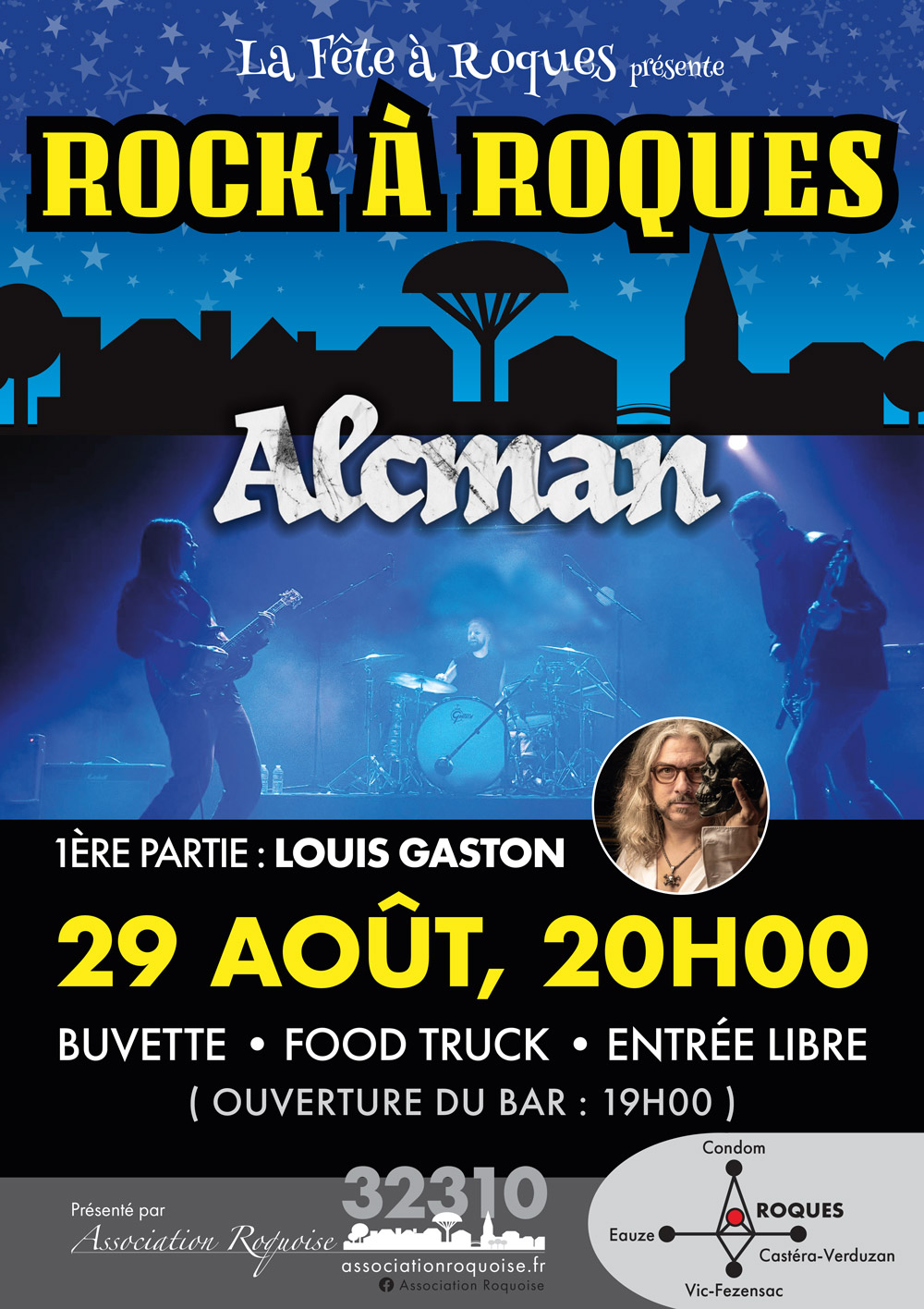Le 29 Août, le rock est de retour sur ses terres ! Cette année, Alcman vont faire vibrer le village de Roques avec ce jeune groupe de Nérac. Et pour commencer, nous avons Louis Gaston comme 1er parti